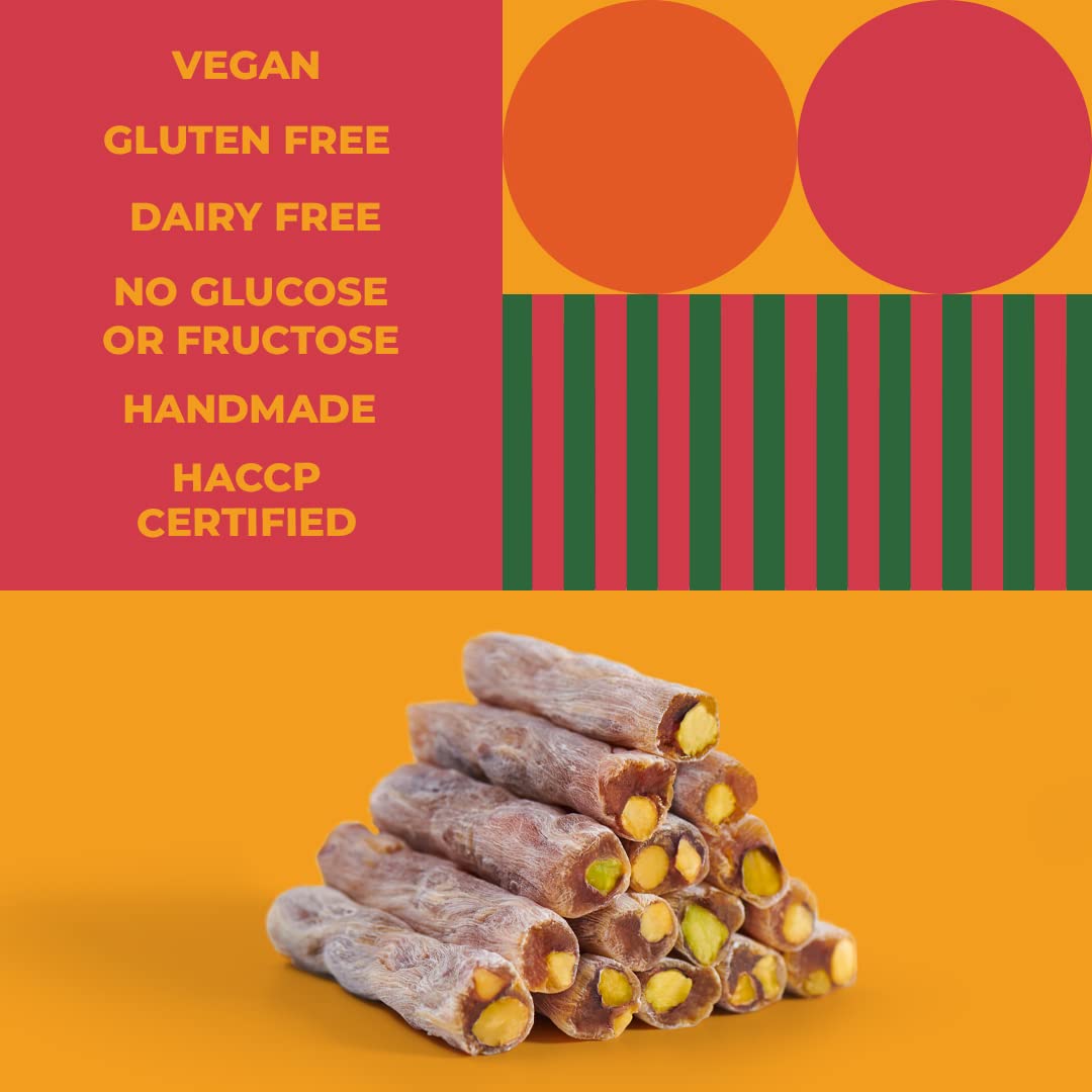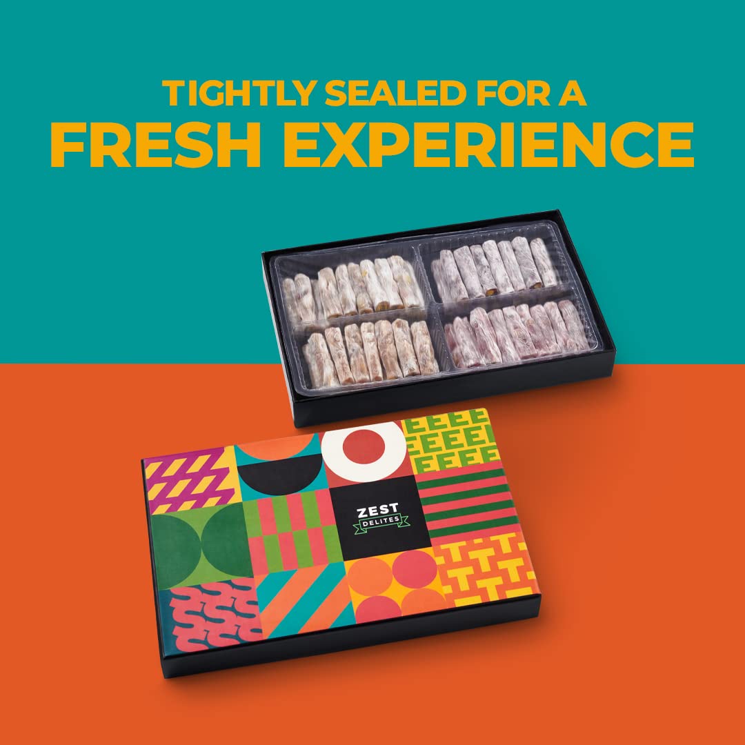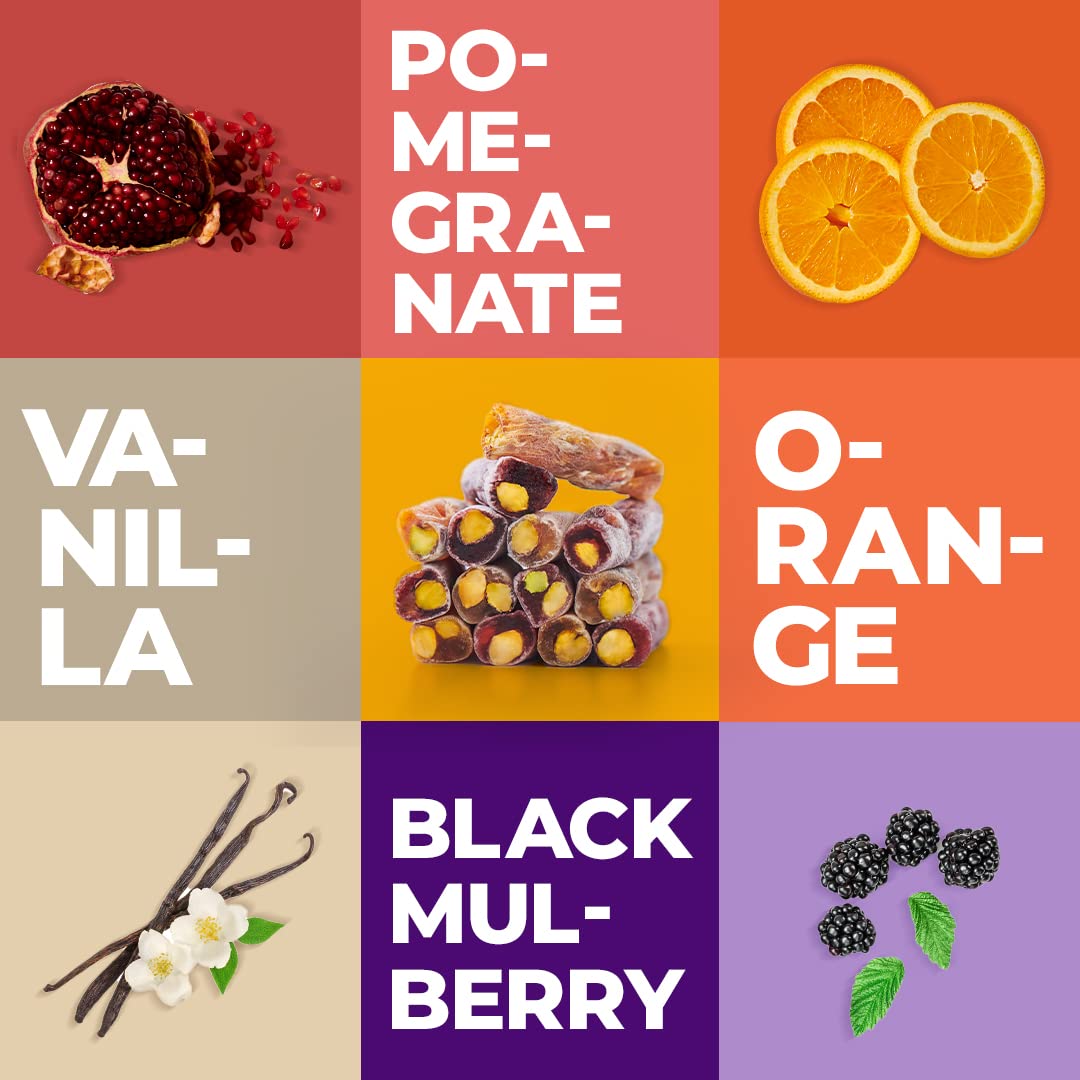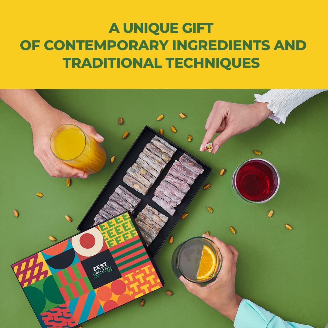 Zest Delites Gourmet Vegan Food Gift Box - Turkish Delight Candy Box, Fruit Ingredients; Orange, Vanilla, Pomegranate, Black Mulberry and Pistachio Nuts, Birthday Gift for Her & Him, Soft Candy Snack Box