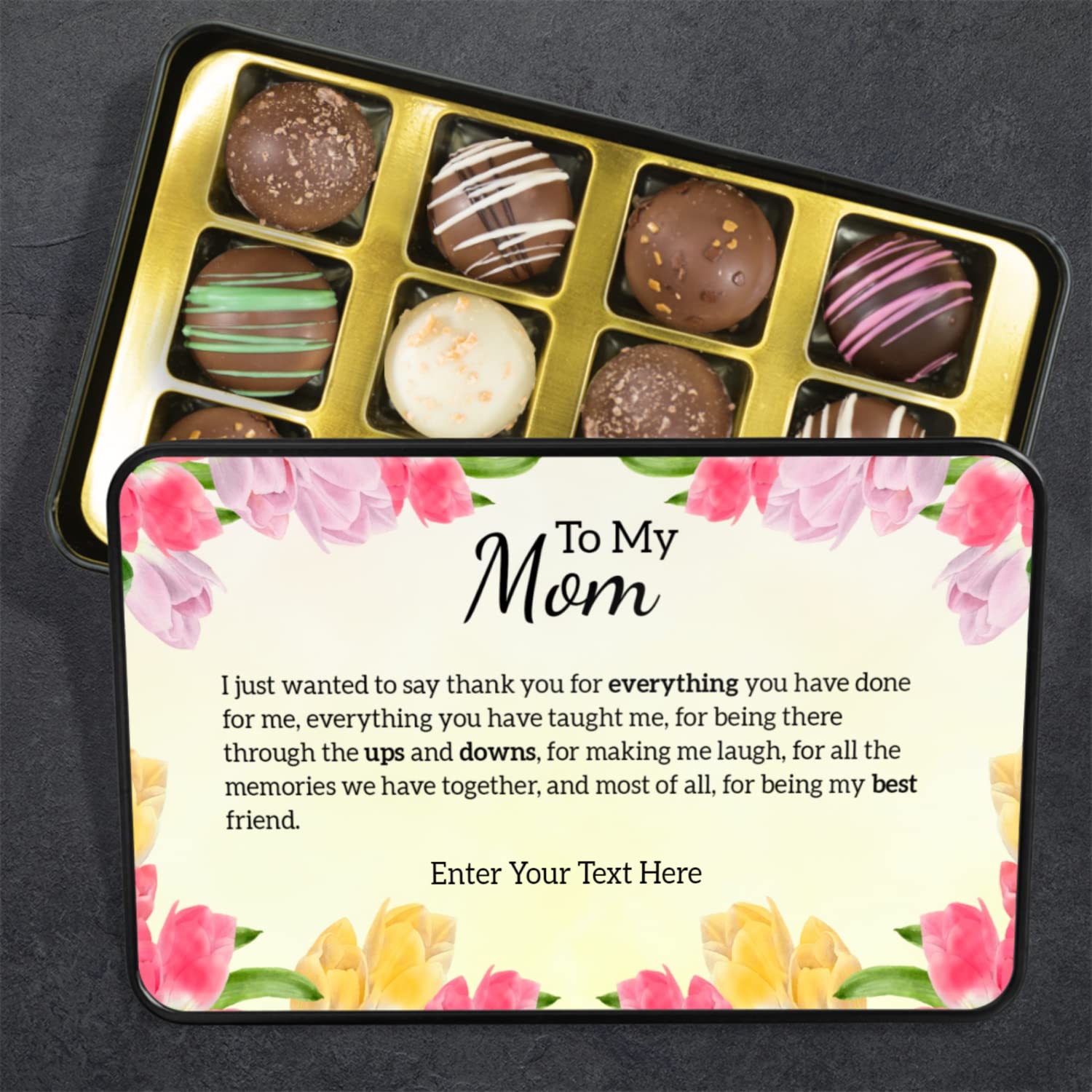 To My Mom Personalized Handmade Chocolates In Keepsake Tin - Gifts For Mom - Mom Gifts Gifts For Her Gifts For Women With Personalized Text