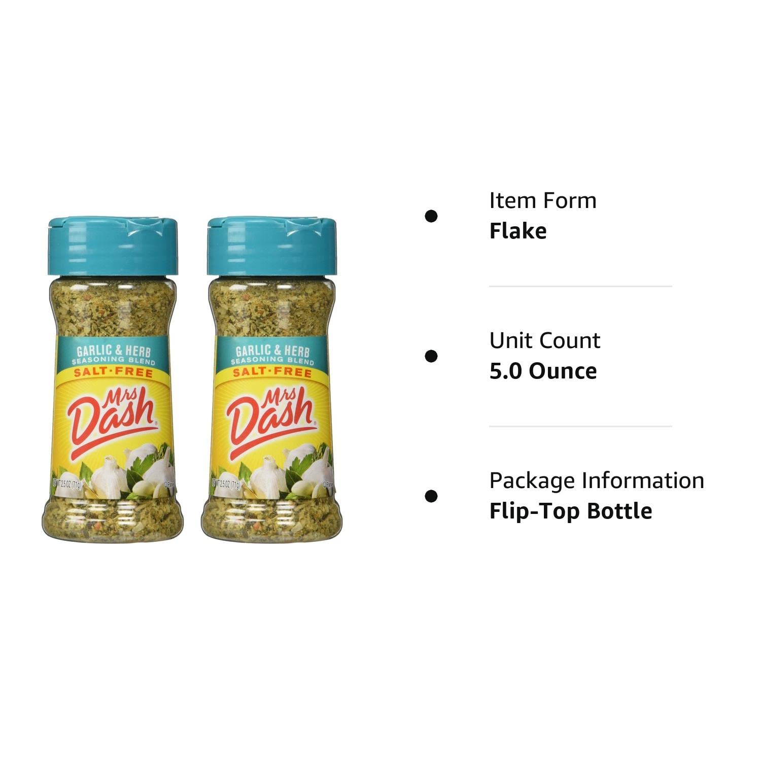 Mrs. Dash Garlic & Herb All Natural Seasoning Blend 2.5 oz - Pack of 2
