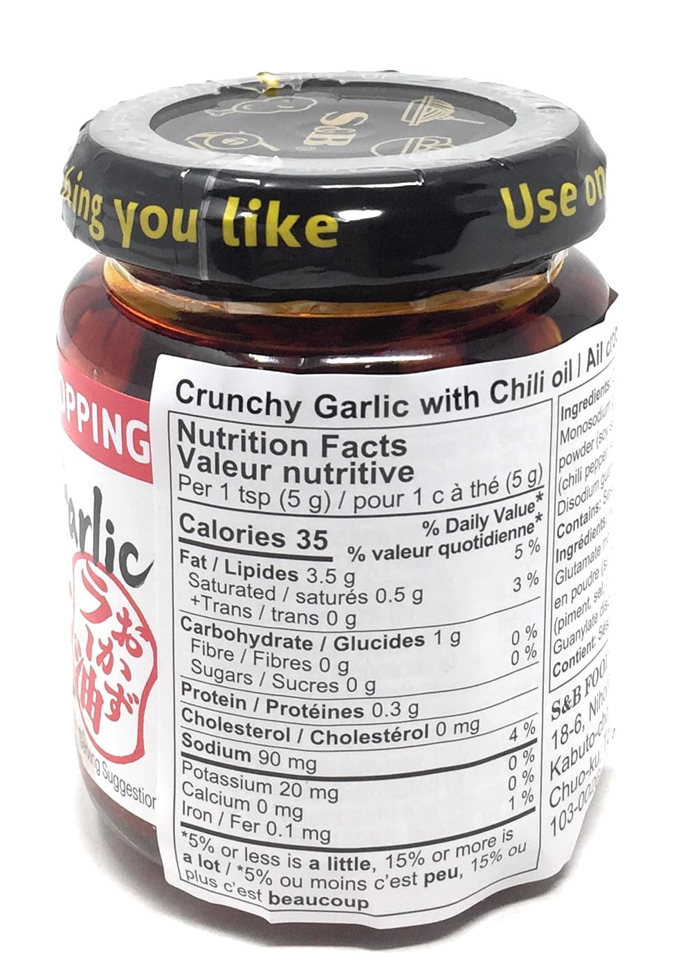 S&B chili oil w/ Crunchy Garlic 3.9 oz (Pack of 2)