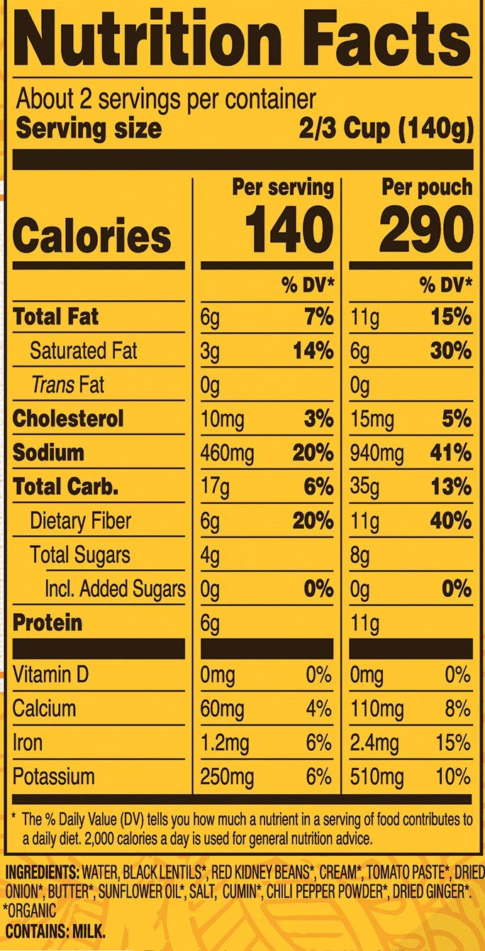 Tasty Bite Shelf Stable Lentils & Red Beans Entree Madras Lentils 10 Oz