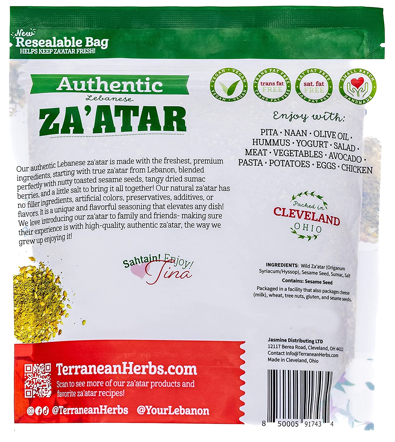 Terranean Herbs & Spices Authentic Zaatar Spice Blend, 12 Oz Bag, Premium Lebanese Blend with No Fillers and No Substitutes